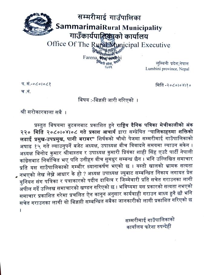 » विज्ञप्ति जारी गरिएको सम्बन्धमा ।