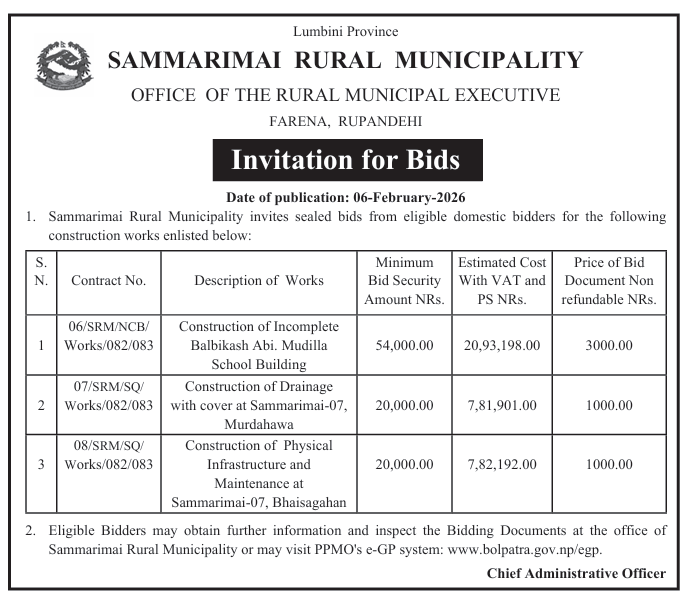 सार्वजनिक खरिद/बोलपत्र सूचना