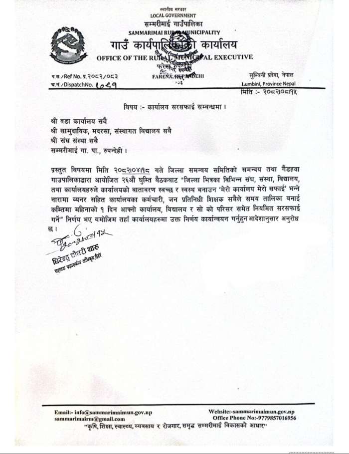 » कार्यालय सरसफाई सम्बन्धमा ।